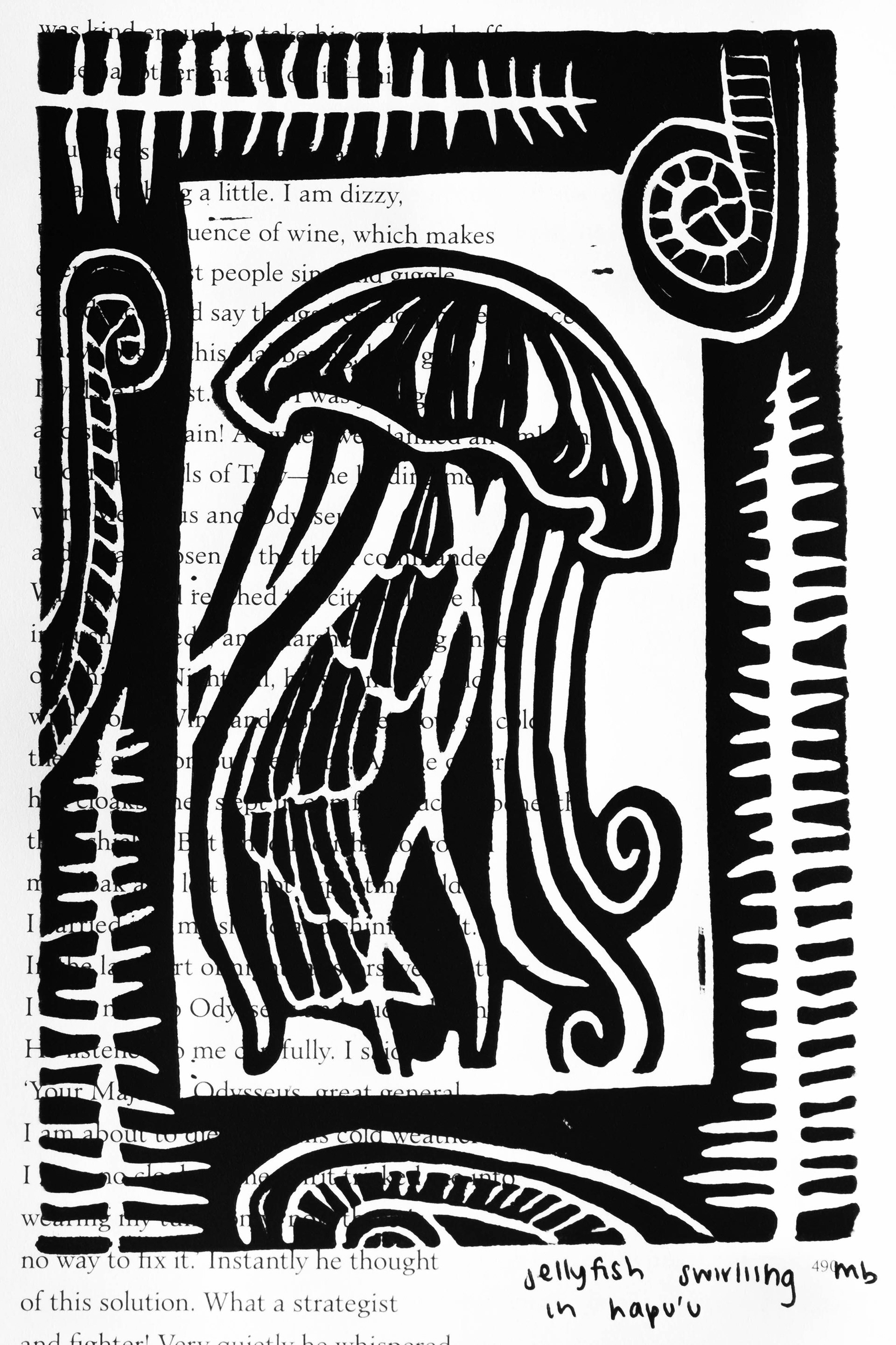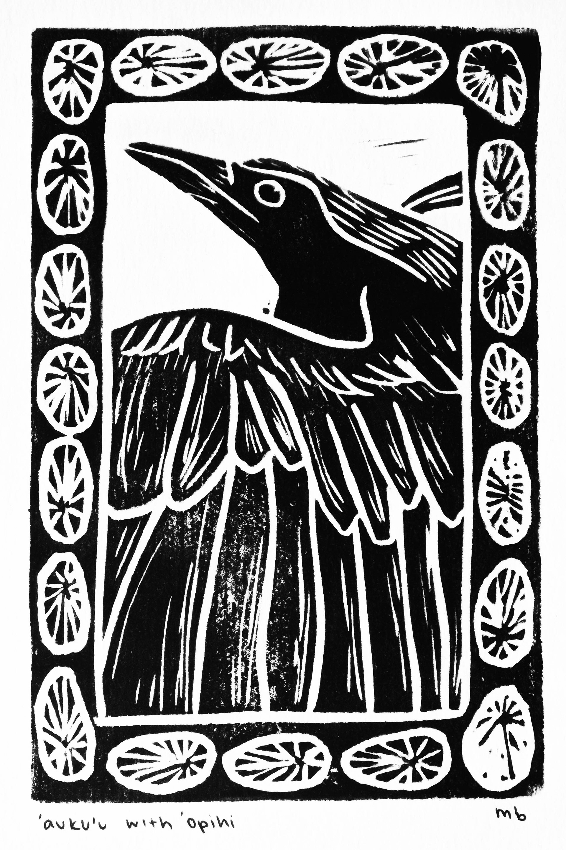a collection of linocut prints featuring the natural world and its interactions. each piece is drawn, carved, and printed by hand. prints are available for purchase through email or instagram dm.